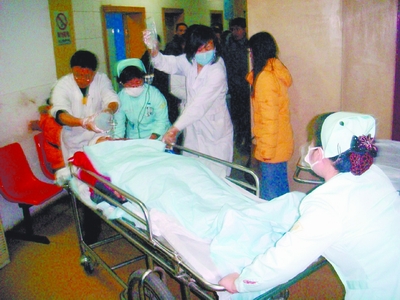医护人员紧张抢救受伤学生。