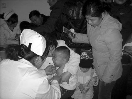 排队打疫苗 大众网-齐鲁晚报 2008.12.1208:40 关注 12月5日至12日,威海对全市8月龄至6周岁儿童进行麻疹疫苗强化免疫。11日,记者在北门外社区卫生服务站看到,不少市民带着孩子前来排队注射疫苗,争取搭上“末班车”。 许君丽摄