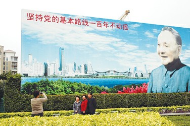 2008年12月13日,人们在深圳福田区邓小平画像前留影。