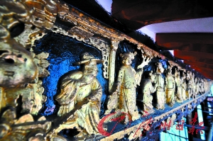 另外,万福台的金木雕群经修补之后即将安装完毕。而拆卸前公众比较关心的四灰塑也已经回升屋顶。