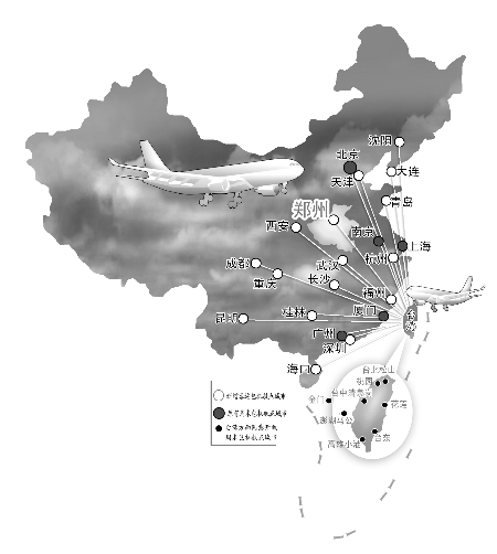 商报讯(记者 施彩英)昨日早晨,两岸“三通”首个飞往台湾的大陆航班起飞。但记者获悉,想从郑州直飞台湾,暂时尚无可能。