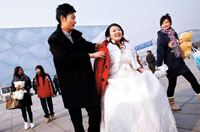 地震情侣 鸟巢秀婚纱