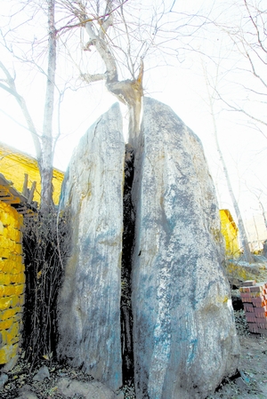平山县滚龙沟村古树根劈7米高巨石