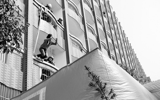 跳楼一定要注意方法。跳楼时应尽量往救生气垫中部跳或者选择有水池、软雨篷、草地等方向跳,如有可能,要尽量抱些棉被、沙发垫等松软物品或打开大雨伞跳下,减缓冲击力。杆跳跳楼法,一根结实的比人稍长的杆棒,下跳时,人将杆棒双手抱住,双腿夹住,两腿交叉扣住,如爬竹竿一样,头与手的上部、脚的下沿务必留出一段,两头约50厘米。抱杆跳楼者大多数是杆棒先撞地,这种“硬碰硬”自然可以大大减轻身体的伤害程度。