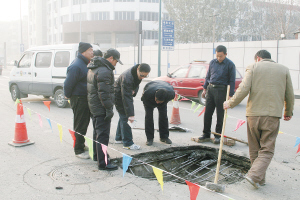 天津市道桥管理处第一管理所工作人员说,他们昨天9:00左右上路巡查时,发现了这个深坑,便赶紧采取措施。不过,出现深坑的原因与路面塌陷无关,这里是供热公司埋设的暗井,从外面根本看不出来,而里面用钢筋承载重量。