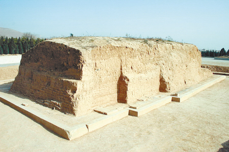 桥陵南门西侧三出阙形制的阙台台基。