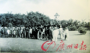 这张照片是记者在东莞市政协教科文卫体委员会负责人手上“淘”到的,传说是当年的德国传教士在东莞高埗东江支流旁所摄。而照片上风景如画的景致后面还隐藏着一个当年令人闻之色变的地方:稍潭疯院。而后一张照片是麻风病人在稍潭疯院的合影。稍潭疯院的主要建筑正如所见,尖顶圆窗,西式和中式的风格结合得颇为紧密。