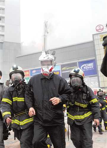 “火灾紧急,启动成都市重特大灾害事故抢险救援预案,全力疏散楼内人员!”在广场外,成都119调集了12个中队的大批车辆赶到。由于“火情”严重,市政府启动了重特大灾害事故抢险救援预案,调集110、120、安监和环保等人员到场,与119共同抢险。消防员一边阻止火势蔓延,一边组织人员有秩序疏散。在楼顶处,一辆曲臂登高车伸出钢臂,一一将被困人员接到地下,几分钟后,楼内数千人被从各通道成功疏散到安全地带。