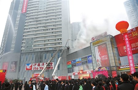 成都万达广场举行大规模的消防演习