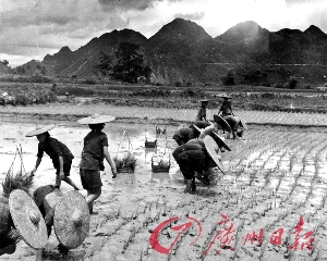 60多年前,也许生活在港口路市民完全想象不出来当时凤凰山下的情景:宽宽的水田里,勤劳的江门女子,正一字排开,她们有的直立看着同伴敏捷的插秧身手,有的弯着腰用水细分手中的秧苗,还有的转身回头寻找背后装着秧苗的竹筐……