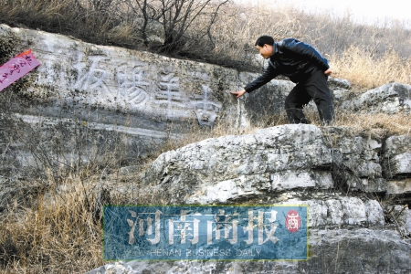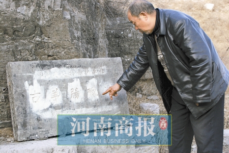 张华德介绍历史时,也不忘现在的情况。距古羊肠坂石刻十多米远的地方,放着一个石碑,那是1986年,河南省人民政府公布古羊肠坂为第二批文物保护单位的石碑。