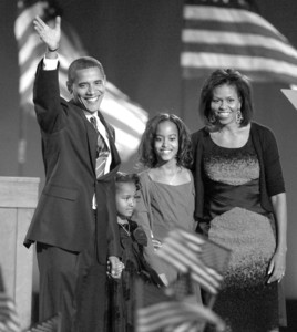 □11月4日,奥巴马在大选中胜出,在芝加哥举行庆功晚会。