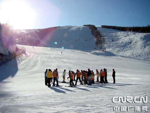 在营业楼的北面是初级者的卧龙道。它是中级雪道玉龙道的一部分。媒体采风团的记者同仁们大多为首次参与滑雪,所以这里也是记者一行在此撒欢的地方。陪同前来雪场的张家口旅游局胡建忠副局长再三地叮嘱大家:“为了大家的安全,千万千万不要到中高级雪道去一试身手,否则出了人身安全的问题那可真就麻烦了……”