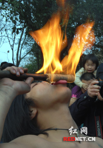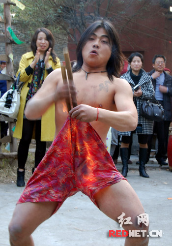 沅陵巫傩绝技表演让人瞠目结舌 火烧下身羞煞众人