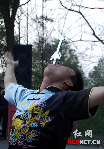 (口吞宝剑。)