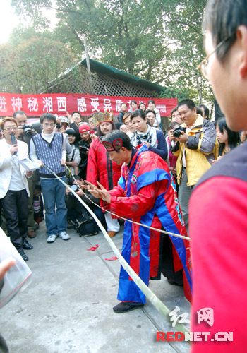 红网沅陵12月21日讯(记者 喻向阳)烈火烧身,仙人合竹,秤杆提斗……昨日,前来沅陵参观的自驾游车友们,在沅陵看到了一场地地道道的沅陵巫傩绝技表演。