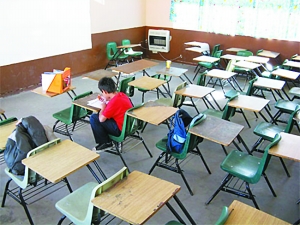 在墨西哥华雷斯一所小学的四年级教室里,原本容纳40个学生的教室里,只有一个孩子在写作业。隔壁班来上课的学生也只有两个。由于暴力绑架案件频发,家长们都不敢让孩子单独出门上学。