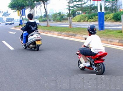 海口街头:学生狂飙迷你摩托车 一路逆行[图]