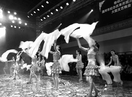 费翔等著名艺人的表演引起了现场观众的共鸣,而当地歌手张丽霞等演唱的歌曲联唱《歌声飘过30年》,用9首各年代经典歌曲,唤起一个时代的记忆。