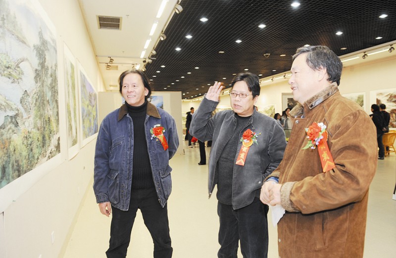 此次展出的合作画均为 “台湾彩墨三人”萧进发、李沃源、李元庆三人联合创作的台湾大幅长卷国画,他们三人合作用两年的时间描绘了台湾山水风光的综合印象。画家李元庆说,他们三个人都是科班出身,20多年前曾一起合作创作巨作 《台湾北海壮观》。“萧进发写景,本土味浓又热爱台湾风情;李沃源写境,格局大又冲劲十足;而我则是写心,细腻丰厚以艺术性见长。因此,20多年后,我们还是选择了台湾的北海,一起创作推陈出新的迷人风采。”