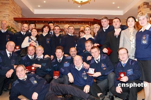 12月23日,中国驻俄罗斯大使刘古昌在俄罗斯紧急救灾部为98名俄赴华抗震救灾人员颁发“抗震救灾纪念章”。中新社发 田冰 摄