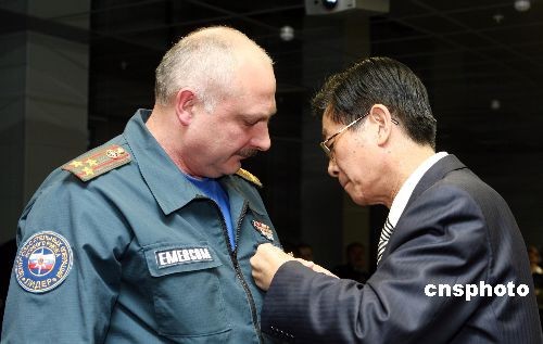 中国为俄赴华抗震救灾人员颁发"抗震救灾纪念章"