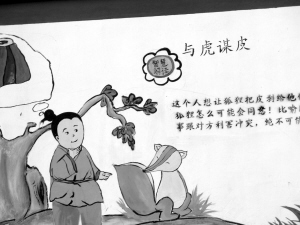昨日郑永娜女士来电:今天快报第5版有则稿子《可能狐狸好商量》。说东新路上有则墙画将“与虎谋皮”解释成“要狐狸剥皮给他”是错的,应该改为“跟老虎商量取下它的皮”。其实墙画根本没画错,是你们记者搞错了,与虎谋皮是从与狐谋皮演变过来的,我刚才已经查过汉语成语词典了。你们这样一改,才是真的没文化呢。