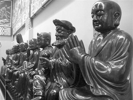 本报讯(文/图 记者 丁伟 李晓)2009年元旦当天,位于乐山市郊苏稽镇一博物苑内的500罗汉堂将正式开门迎客(右图)。用乌木精雕细刻而成的500尊罗汉塑像依次陈列,或面目慈祥,或面色狰狞,或大腹便便,或瘦骨嶙峋。