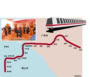 记者了解到,广佛线西起禅城魁奇路站,东至广州市海珠区的沥滘站,连通广州轨道交通1、2、3、8号线,线路总长32.16公里,总投资约147亿元,全为地下线路,共设21个车站,计划2010年10月31日开通首通段魁奇路站—西朗站,2012年全线建成通车。届时,佛山将成为全国第一个拥有地铁的地级市。