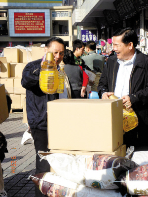 开完了重要的党员会议,皇岗股份公司前任董事长庄顺福和现任董事长庄创裕也赶到了派福利的现场和村民一起分享新年的快乐。一位阿婆看到他们,高兴地说,“我全家领了10多袋米和油,这一年派好多次米和油,家里一年都不用到外面买了,足够一家人吃一年了”。“海归”党员、皇岗社区党委第一任书记庄创裕对记者说,“村里每年都会为村民派米和油,通过这样的形式,让在村里和在香港、国外的皇岗人的心都凝聚在一起。2008年我们经历了金融海啸,我们希望能和香港同胞一起共同渡过难关,这样的活动,是体现公司对每个村民的关怀,还‘福’与村民,展望新的一年,希望我们的村民有一个新的开始,有一个更加美好的生活。”