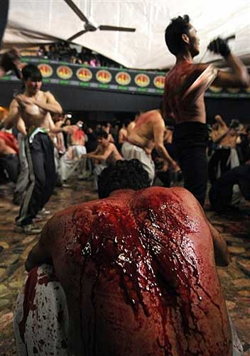 1月4日,阿富汗什叶派穆斯林在一个宗教仪式上用铁鞭抽打自己。