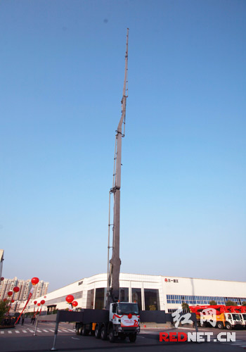 三一重工刚下线的72米臂架泵车。红网长沙1月6日讯(通讯员 张莉 记者 喻向阳)日前,一项工程机械领域最新的世界记录又在三一诞生。由三一重工自主研制的世界最长72米臂架混凝土输送泵车成功下线。72米,打破了世界纪录的高度。
