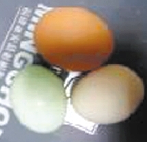 昨日14时许,记者来到梁月香家,她正拿着一些“绿色鸡蛋”,让村里的老少爷们看稀罕。她捧出一只篮子,篮子里放着一些鸡蛋,在略显红色和白色的正常鸡蛋中间,有几只鸡蛋表面呈浅绿色。梁月香说,她曾用绿皮鸡蛋做了菜,家人都认为比较好吃。