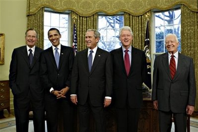中新网1月8日电据美国媒体报道,美国当选总统奥巴马7日称,他与布什以及三位前总统克林顿、老布什和卡特共进午餐将是一次“非同寻常的聚会”。