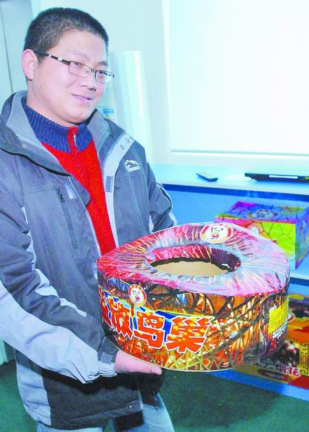 此外,安凯日用杂品有限公司、荥阳湘豫鞭炮有限公司、河南豫冠安全发展有限公司和中牟县供销社烟花爆竹销售中心四家企业今年也都从湖南引进了奥运系列烟花。中牟县供销社烟花爆竹销售中心引进了能在天空中打出五环形状的“五环之光”等奥运造型烟花,其批发价在800元左右,“奥运之光”等烟花批发价在100多元;荥阳湘豫鞭炮有限公司带来的“中国力量”、“祥云”奥运烟花批发价在200元左右。
