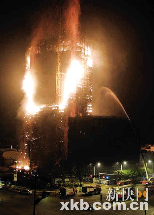 昨日凌晨零时45分,佛山市禅城区岭南大道在建的26层岭南大厦顶楼突然起火,烧足5个钟后才被扑灭,幸未造成人员伤亡。据工人推测,电线短路引发火灾,但相关部门昨日下午3时举行的火灾报告会未给出明确说法。据称,该楼为佛山首个甲级生态写字楼,造价约2000万元,因受损严重或被弃用。