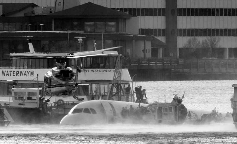 据报道,这架客机迫降在全美最繁忙的商业区曼哈顿中城第48街附近的哈德逊河水域。电视直播画面显示,当海岸警卫队船只和大批附近渡轮赶到时,客机的主体依然漂浮在河面上,水线大概位于客舱窗户附近,大部分乘客已经爬出舱,站在两侧机翼上和及膝的河水中等待救援。