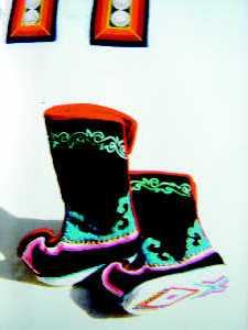 男鞋装饰较少,至多会镶以红边,女鞋则会饰以各种花草图案,然而,花样中不会出现宗教性的图案及金黄色。