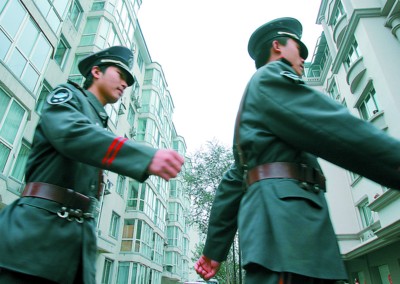 □天气寒冷,为保安加件厚衣服是许多业主所期望的。 CFP资料图片