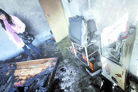 着火房间内一片狼藉