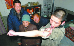 21日,家住山西运城盐湖区、现年16岁的受害人王某和家人在一起。新华社记者 武敌 摄
