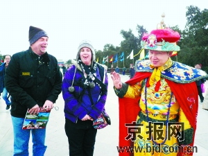 本报讯(记者龙露)今天上午,在280人组成的大清卫士的簇拥下,“大清皇帝”的仪仗方队穿过天坛丹陛桥,走上祈年殿,开始了盛大的祭天盛典,祈求上天给中华大地带来五谷丰登、太平祥和的一年。