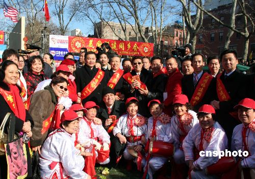 纽约华埠"新春爆竹"迎金牛 中领事众侨领齐拜年