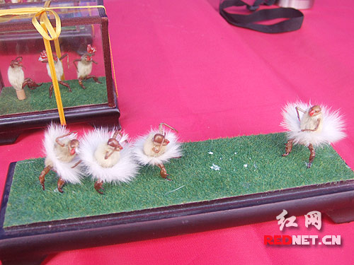 红网长沙2月1日讯(记者 汤红辉 实习生 彭双林)毛猴四厘米的身高在玻璃罩内并不显眼,而一只毛猴20块的价钱则让首次见到它的长沙市民感到“有点贵”!“主要是因为大多数的人对这个不了解,不了解它的由来、制作它的材料、甚至是这个作品创意的来源。”来长沙参加“九州大庙会”,毛猴并不是跟随自己的“主人”肖掌柜来的,而是由民间艺术专业委员会会员吕铁智,此次来参加庙会的北京民间艺术团团长带领来的。