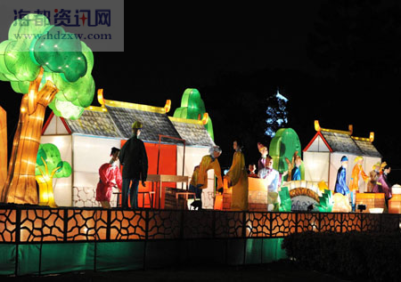 这组花灯讲述邻里相互礼让、和睦相处的传统美德