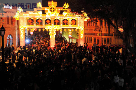 本报讯 昨日是第三届福州南后街元宵灯会亮灯首日,晚6点半,五一广场、南后街的几百盏花灯同时点亮。万余市民涌上街头,欣赏绚丽多彩的元宵花灯。灯会将持续至2月9日(正月十五)。