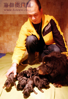 “2月3日下午4点开始分娩,一直到晚上9点,5个钟头共抱出了10只獒崽,八公两母。”据许先生介绍,这只母藏獒刚满周岁,从血缘关系上讲是著名中长跑教练马俊仁所养藏獒“小王子”的孙女,当时他买来花了15万元,取名“小公主”。