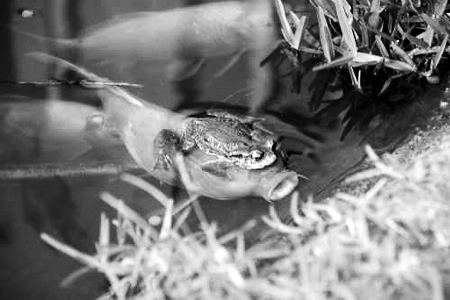 商报讯 真是天下奇闻!一只调皮的盘古蟾蜍骑在池塘里的锦鲤头上,前趾紧抓着锦鲤的双眼,四天三夜后,锦鲤精疲力竭死亡。