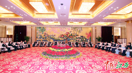 2月10日,江西省委书记苏荣,省长吴新雄,省委副书记王宪魁,省政协主席傅克诚等在南昌亲切会见了前来出席省政协十届二次会议的港澳委员。图为会见现场。(江西网记者 邓小勇摄)