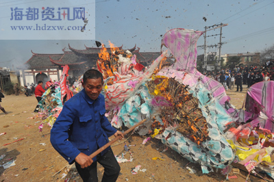 事件实录:在闽西客家元宵节民俗活动中,连城姑田大龙极负盛名。按当地风俗,元宵节过后,曾华彩一时的大龙要放火焚烧,灰烬将撒入溪中。据说,龙的灵魂会顺着溪水回到大海,龙还会在下游的江面显灵。